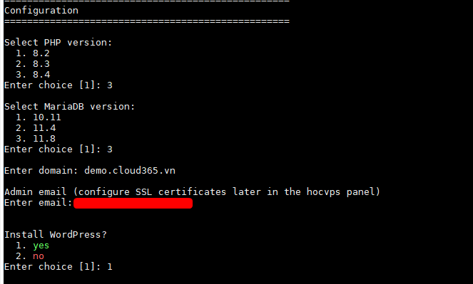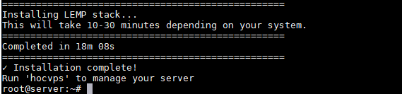 Cuối cùng, nếu không có vấn đề gì xảy ra, bạn sẽ nhận được thông báo cài đặt thành công và bạn có thể quản lý qua lệnh hocvps .